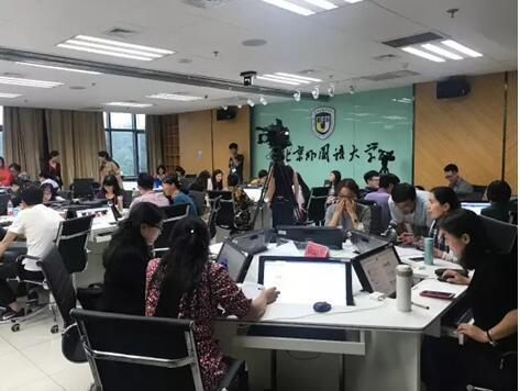 在小组活动与教学案例分享环节,北外网院院长助理蔡静副教授、课程主讲教师吴立高博士、主讲教师李晨博士、邓亚峤老师与学员及教师们针对教学实例深入探讨,并基于自身实践经验进行激烈探讨。随后,在专家指导下学员们进行了上机实践,专家们领先的学术性与教学实践性为教师们带来很大启发,引起热烈讨论。