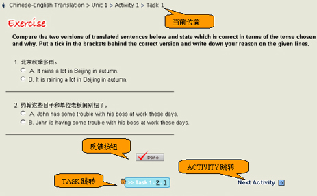 2、本课程共分为11个单元与Introduction部分,点击界面左侧的单元名称可以选择任一单元进行学习。 3、点击界面上部的栏目标签,主显示区就会显示所选单元的各个栏目的学习内容。 |